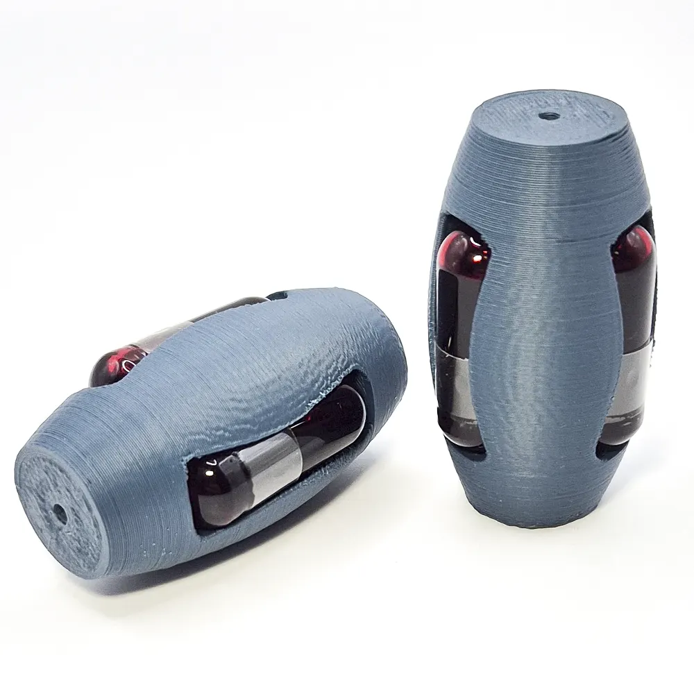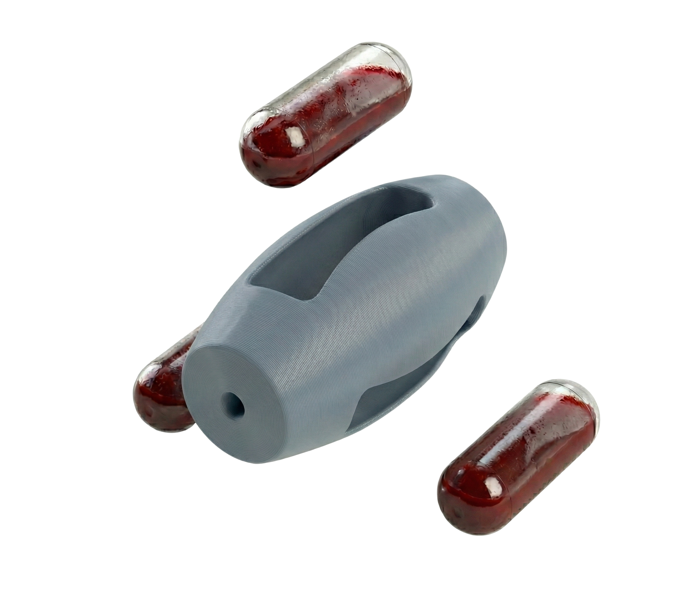 Hosszas fejlesztés és tesztelés után jutottunk el a kapszulás technikáig. Az ötlet mögött egy nagyon egyszerű, mégis hatékony elv áll: tartsuk vissza az aromák és kivonatok oldódását addig, amíg valóban szükség lesz rá. Ha ugyanis az illatanyag túl hamar elkezd oldódni, akkor már a vízbe érkezés első másodperceiben „elfüstölhet” a csalogató hatás nagy része. Ezzel nemcsak anyagot veszítünk, de a halakat sem ott és akkor fogjuk ingerelni, ahol és amikor a legnagyobb szükség lenne rá. A kapszulák megoldást kínálnak erre problémára. Egy jól oldódó, vízben gyorsan terjedő folyadékot hoztunk létre amit kapszulába töltöttük, ami természetes, környezetbarát anyagból készült. 18-20°C-os vízben tesztelve átlagosan körülbelül egy óra elteltével reped meg a kapszula, és ekkor kezdi el lassan kiengedni magából az intenzív halas–rákos kivonatot nagyságrendileg egy órán keresztül. A késleltetett hatás pedig pontosan azt eredményezi, amit szerettünk volna: az illatfelhő addig biztosan nem „dolgozik”, amíg le nem ér a végszerelék a helyére.